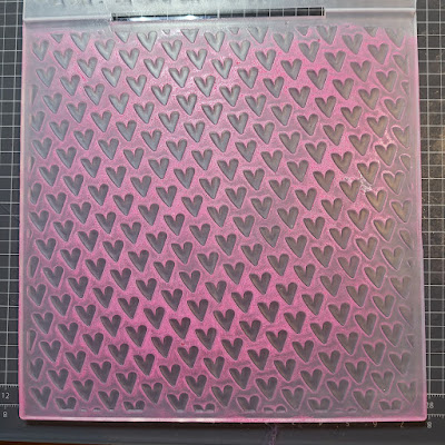 Då blir bakgrunden infärgad och hjärtanen som är upphöjda är fortsatt vita (eller den färg som pappret du använt har).